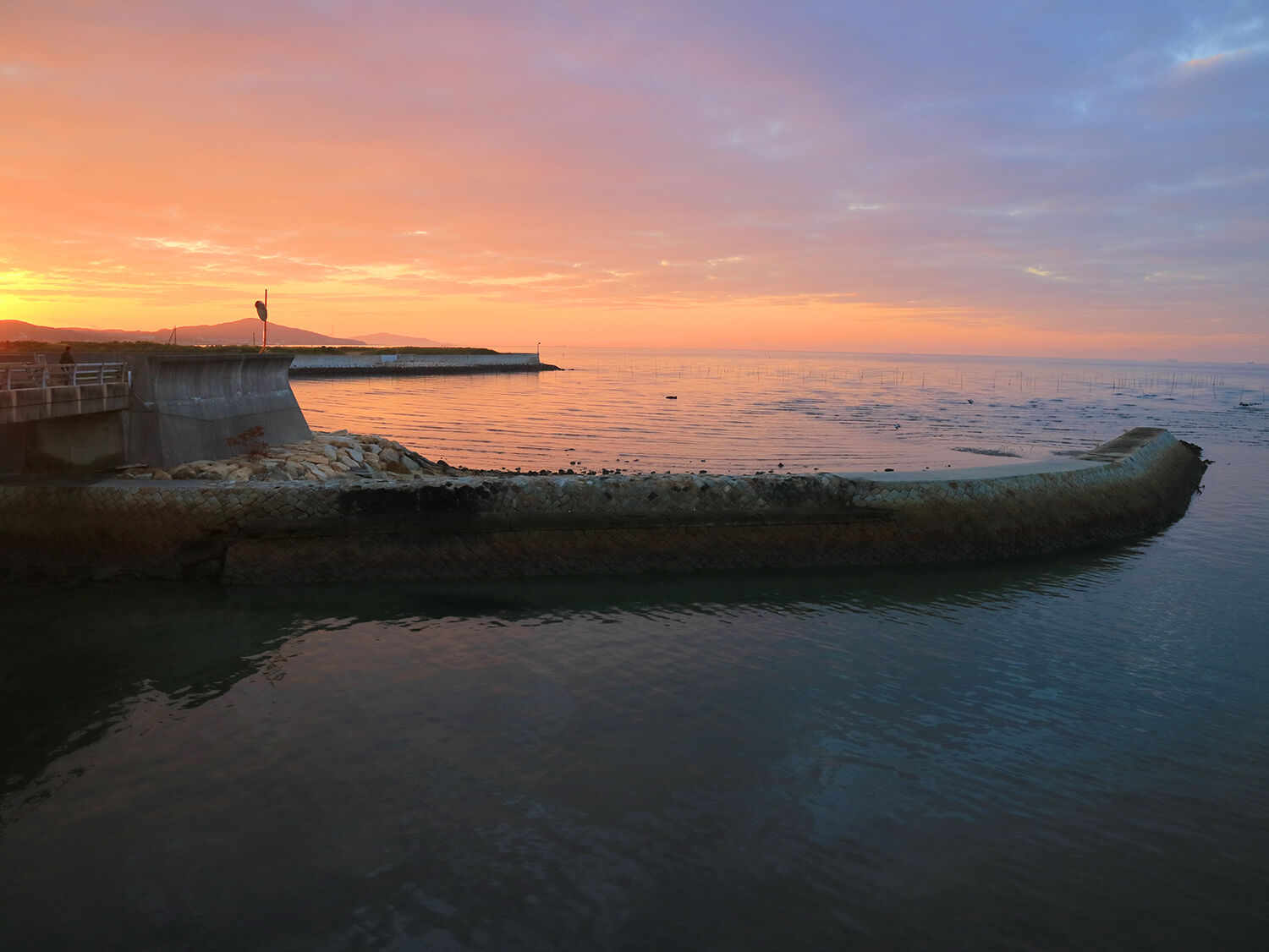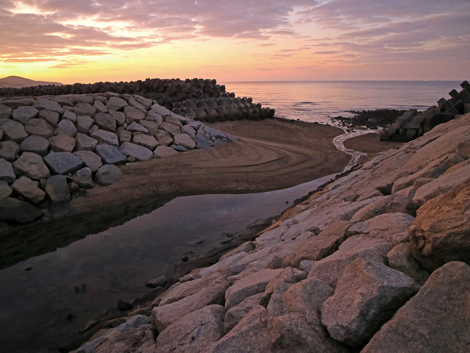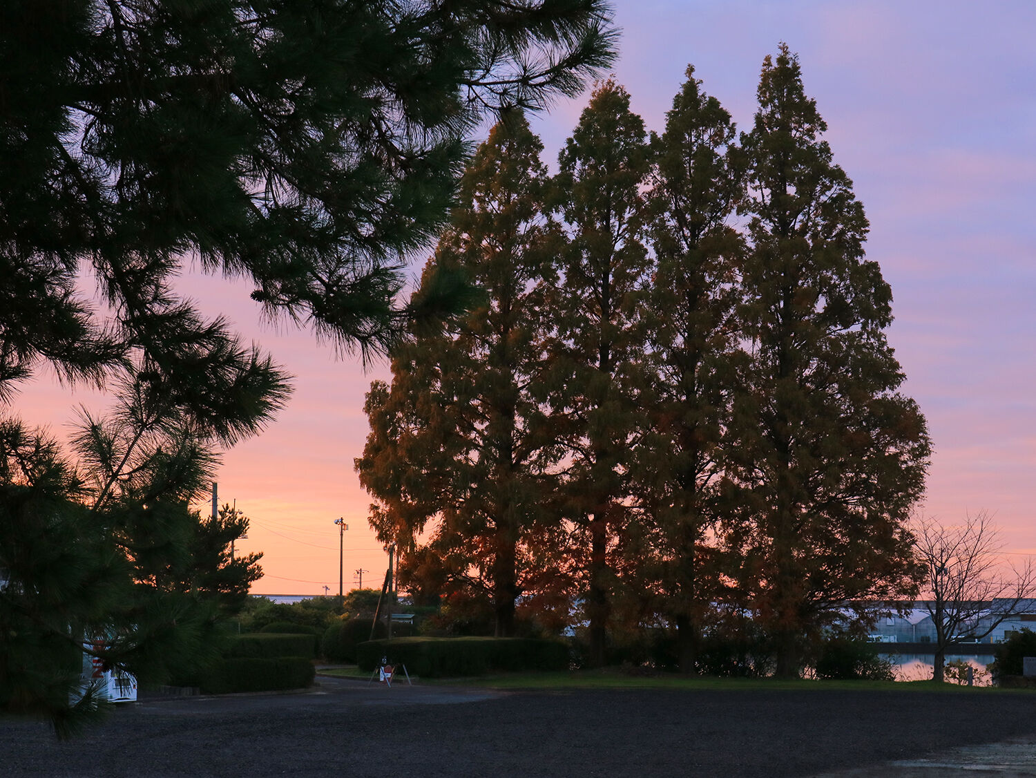 2025-11-30 ■ アッ!と言う間に霜月も晦日今月は前半美術展があっただで随分短く感じるど。今朝もまずまずの天候にゃのら。😸んだもんで海岸に出て見たのら。んだらテトラポットの彼方に空が焼け始めた。 河口の堤防が画面のシンプルさにアクセント付けてくれた。 メタセコイアのシルエットに惹かれニャンショット。
